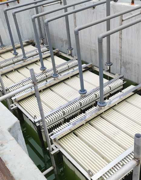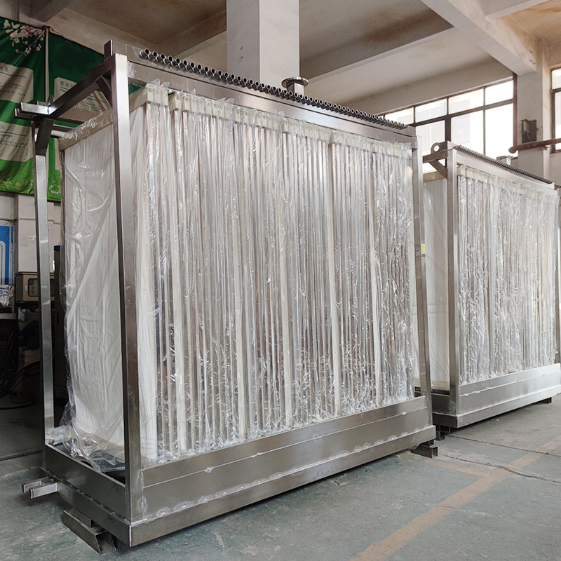 結(jié)構(gòu)形式: 標準化簾式結(jié)構(gòu)。將數(shù)萬根中空纖維膜絲通過獨特的端封技術(shù)和澆鑄工藝制成堅固的簾式膜元件,便于集成到標準膜架上,安裝維護簡便。